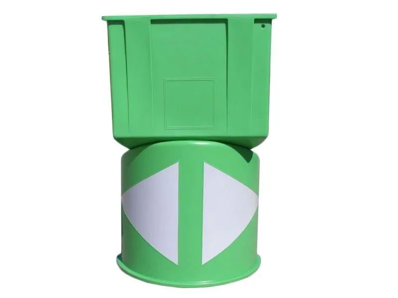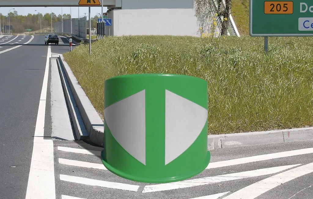 Відбійник дорожній U15b виготовлений з поліетилену в зеленому кольорі, підходить для наклеювання світловідбиваючої фольги. Можливість обтяження внутрішньої частини водою або пісок та виконання в інші кольори. Дизайн дозволяє зберігати відбійник один поверх іншого, що робить їх легшими у транспортуванні. Застосування: маркування розвилки та відгалуження з'єднувальних доріг з'їзди з автомагістралей та доріг швидкісні автомагістралі та початок швидкісні автомагістралі на проміжних ділянках, що є розширенням доріг загальнодоступного користування.